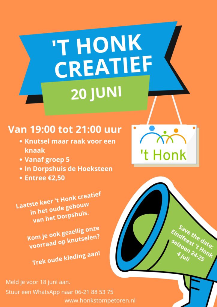 🌟Vrijdag 20 juni is de laatste keer ’t Honk creatief van dit seizoen!! 🌟