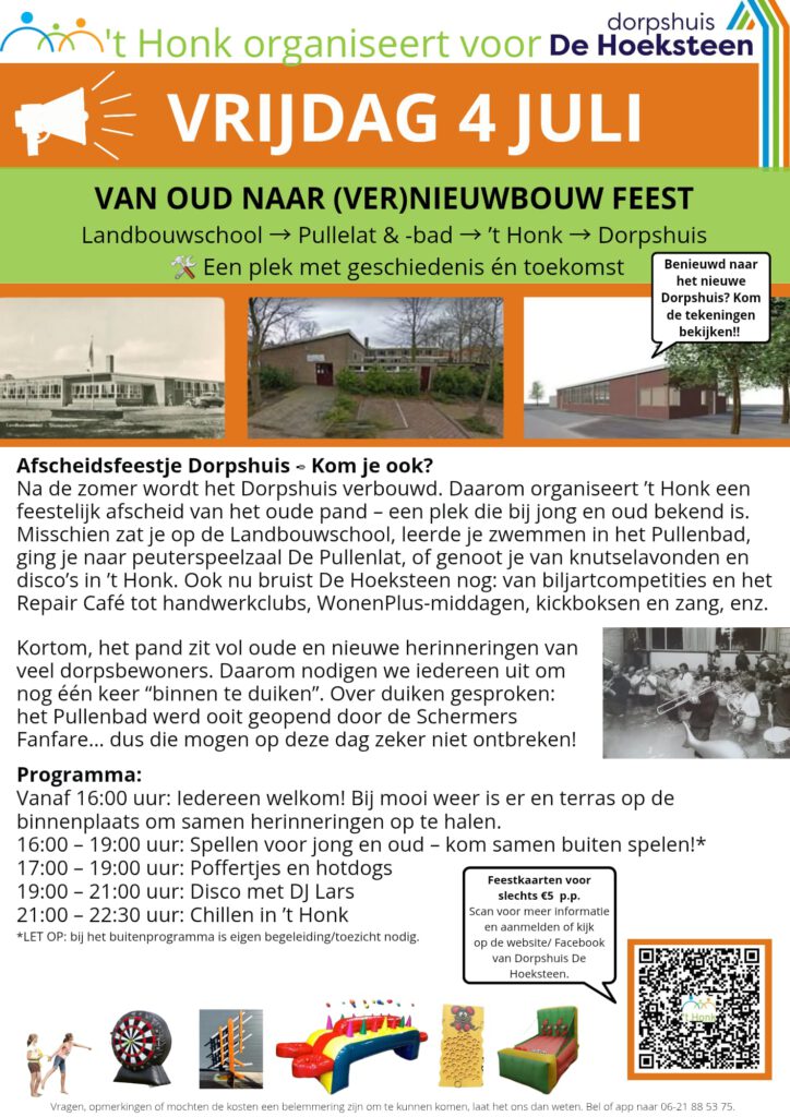 Op 4 juli misschien nog één keer het oude pand bewonderen voordat de verbouwing start? Hierboven vind je de flyer met het programma en de info over de feestkaarten.