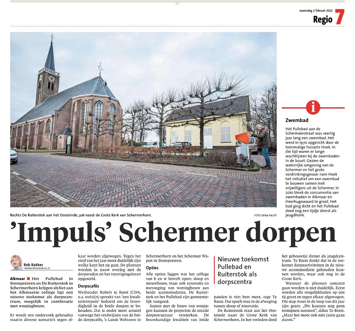 De verbouwing van ons dorpshuis is in volle gang. Vooral de grote raampartij aan de kant van de Schermeerstraat valt al op, daarmee gaan we weer terug naar de oorspronkelijke staat van de voormalige landbouwschool.